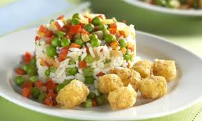 Acrescente e refogue juntos o arroz, a vagem, o pimentão, a cenoura e a ervilha.